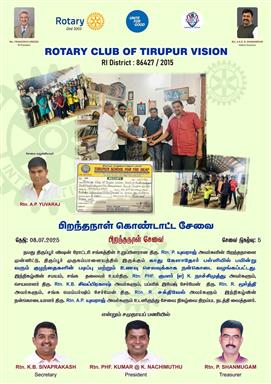 On the occasion of our Rtn P Yuvaraj Birthday Celebration, Sponsore. . .
